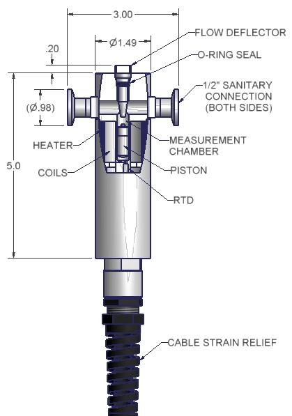 一個導流,放置在活塞、移動流體進入測量室。這個特性,加上不斷的活塞運動,保持新鮮和機械磨砂樣品室。一個內置的溫度探測器(RTD)實際溫度測量的感官室。